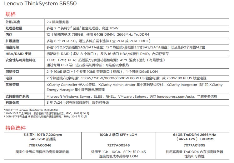 ThinkSystem SR550 - 聯(lián)想服務(wù)器配置參數(shù)(機架式) |